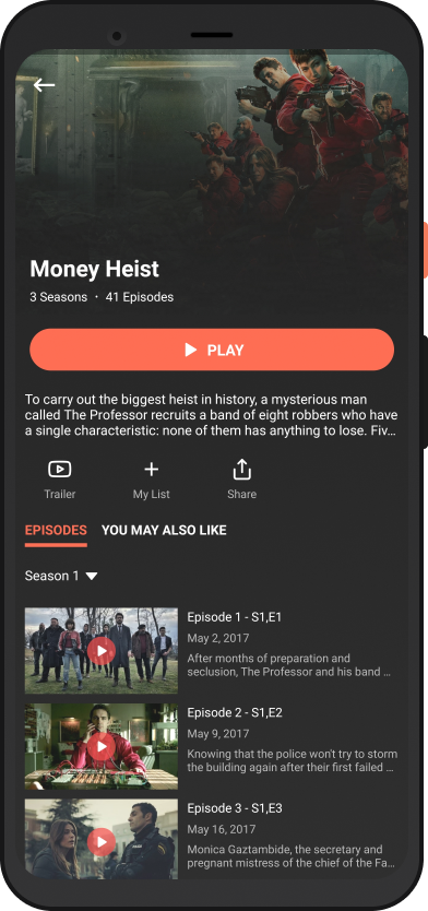 HDO BOX, available for both iPhones and Android devices, offers high-definition film and show streaming. Its standout feature is the User Interface - highly intuitive and beautifully designed, placing it at the forefront in its category. The homepage showcases a variety of trending content across genres like Action, Comedy, and Sci-Fi, ensuring an optimal user experience. Additionally, detailed information is available for each movie, including IMDb ratings, release year, cast, and more.